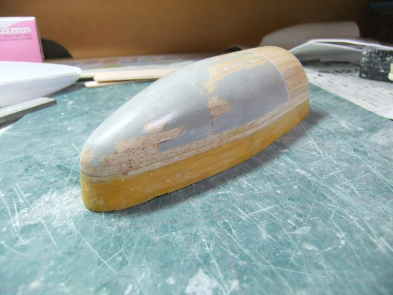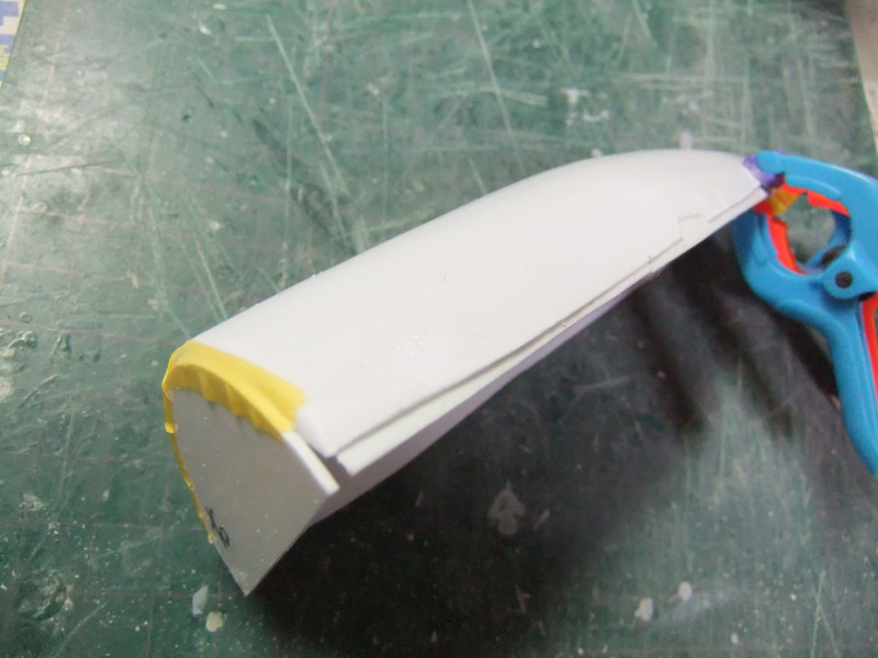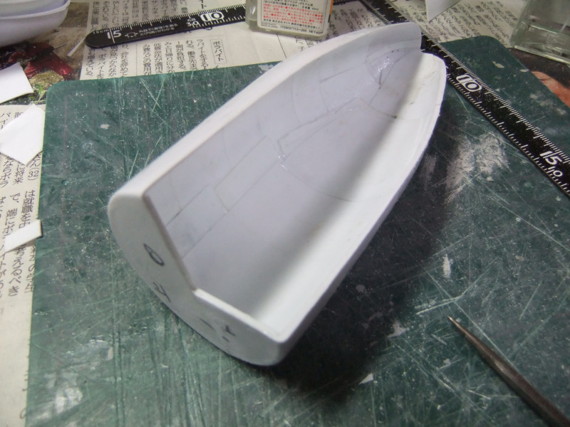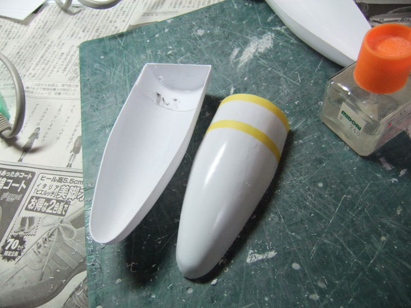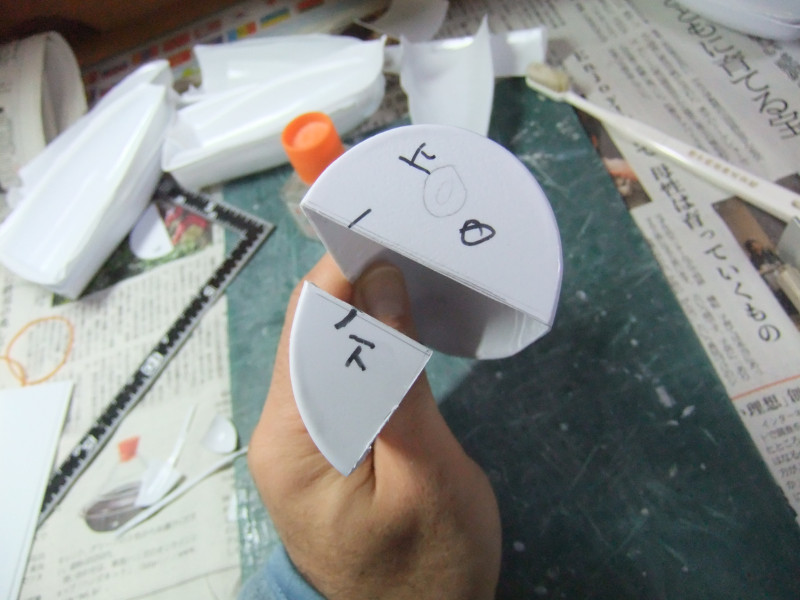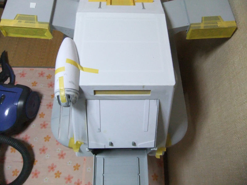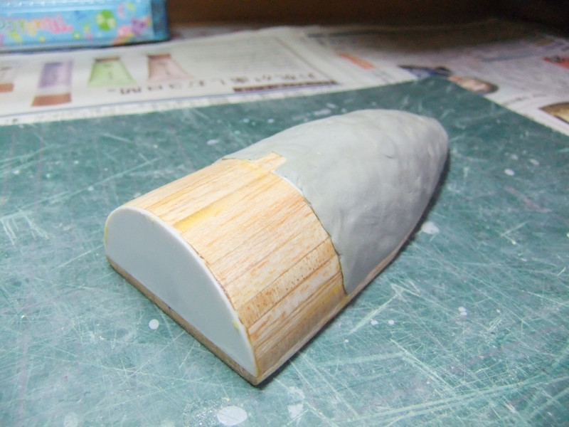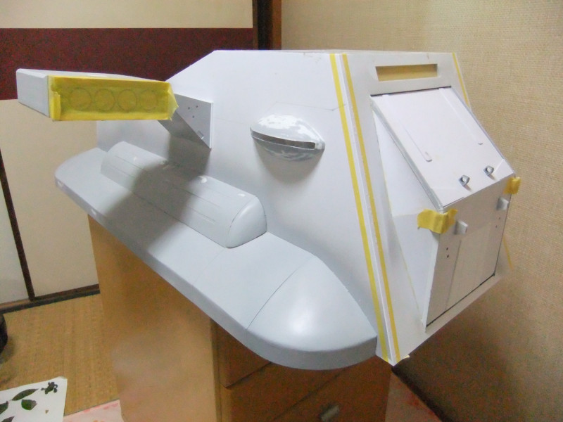 × [PR]上記の広告は3ヶ月以上新規記事投稿のないブログに表示されています。新しい記事を書く事で広告が消えます。 ギャロップの製作ですが、年末年始の休みの間に大分進むかと思いきや 買い物に行ったり、自分や嫁の実家に行ったり、録画したビデオを見たりと 意外と時間がとれず、思ったより進みませんでした。 相変わらず、機関砲基部の製作です。 まず上下に分割してあるパーツを合体させねばなりません。 これは上下のパーツをテープで仮止めしてみたところ。 ほぼ、ぴったり合っています。 同一の型からバキュームフォームした物なので、ぴったり合うはずですが 物によっては微妙に合わないという不思議。 まぁバキュームフォームの際の「すそ」の広がり方等が違うんでしょう。 そのままギャロップ本体に仮に置いてみました。 ギャロップ本体側面の角度に合うように、おおざっぱな調整はしていますが まだぴったり合うとまではいきません。 基部のパーツの裏に0.5mmプラ板を貼って「のりしろ」を確保します。 裏から見たところ 上下を貼りあわせてからさらに補強して、ギャロップ本体の角度に合わせて整形しました。 これが右側で、現在左側にとりかかっています。 PR 先週バキュームフォームで作った、ギャロップの機関砲基部ですが 原型の高さを増したせいなのか、プラが薄くなってしまったので補強する事にしました。 写真の右側がバキュームフォームに失敗した物ですが、これをぶった切って補強に使用します。 右側を輪切りにして、左側の裏側に接着していきます。 本来、同じ原型から作製した物なので、全く同じ大きさになるわけですが これをそのまま二枚重ねても隙間が出来て接着できません。 いくつかに切断する事によって、プラの柔軟性のおかげで接着・補強が出来ます。 こうやって補強して、プラの厚みを増しておかないと 後々、表面処理やスジ彫りの時なんかに穴があいてしまいそうで怖いんです。 機関砲と基部をテープで仮組みしてみたところ。 若干機関砲の砲身が長い気がします。いや、若干じゃなくて大分かな・・・。 しかし、この機関砲って内径3mmのプラパイプを使用しているんですが 1/100スケールに換算すると300mmなんですよね~ つまり30センチ砲という事になってしまいます。 でかい!30センチって機関砲じゃないじゃん! あの砲身の中には30mmガトリング砲が収まっているという事にして 真鍮パイプを円形状に仕込むとか・・・? うーん、めんどくさそう! まぁ、後で考えましょう。 それよりも、基部をギャロップ本体にどうやって接着するかが問題っぽいです。 先週から引き続き、ギャロップ機関砲基部のバキュームフォームのお話です。 先週作った原型はゲタを履かしていなかった為、すその部分が広がってしまっていました。 最初はその「すそ」の部分をプラ板で継ぎ足して作るつもりでしたが やはり原型の高さを稼いで、バキュームフォームをやり直す事にしました。 原型の底にバルサ材を瞬間接着剤で貼り付けて10mm高さをアップしました。 表面が黄色いのは、表面1mmくらいが光硬化パテの層になっているからです。 痛んでいた表面もペーパーがけして瞬間接着剤でコーティングしなおしました。 新しくなった原型を使用してバキュームフォームしたのがこの写真です。 思った通り、すそが広がるのが「継ぎ足した部分」に来たので成功です。 ちなみに、今回使用したプラ板はタミヤのやつとハザイヤのと両方使ったのですが 同じようにバキュームフォームしてもタミヤのプラ板の方が、プラの厚みを確保できるようです。 ハザイヤのプラ板は同じ1mm厚を使用しても、かなり薄くなっていて、ちょっと指で押すとへこみそうなくらいです。 原型を10mmかさ上げしたので余計に薄くなってるんだと思います。 切削性はハザイヤのプラ板の方が柔らかく削りやすかったのですが バキュームフォームに適しているのはタミヤのプラ板のようです。 バキュームフォーム後の厚みをきっちり確保できます。 今回はタミヤのプラ板の手持ちがほとんど無かったので、4枚作った内の3枚はハザイヤのプラ板を使用しています。 つまり3/4は厚みが薄くて、強度に不安があるという事。 補強は必須ですね。 1/100ギャロップの機関砲がくっついてる部分、何て呼べばいいか分かりません。 こういうブログをやってると呼び名が決まってないと不便です。 とりあえず機関砲基部と呼んでおきますが この部分のバキュームフォームを先週済ませました。 相変わらず、バキュームフォームは難しく、一発で納得のいく出来の物が出来上がった試しがありません。 そうすると、数撃ちゃ当たるでたくさん作ってその中から使える物を使うという方法をとる事になります。 この時も、最初は上手くいかなかったのが、何回もバキュームフォームを繰り返していると、コツを体が覚えてきて、最後の方はいい出来になりました。 その代わり何回もバキュームフォームを繰り返してい