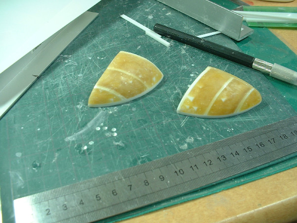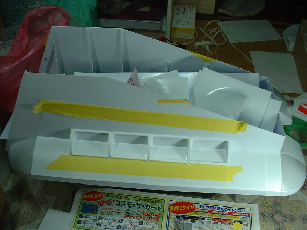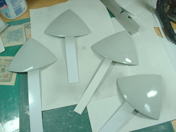 × [PR]上記の広告は3ヶ月以上新規記事投稿のないブログに表示されています。新しい記事を書く事で広告が消えます。 あまり進んでいません。 ここ数日スカートのカバー?部分の骨組みをひたすら削ってました。 今日はスカートカバーの端っこの曲面部分をバキュームフォームしました。 スカート本体と同じ要領で型からバキュームフォームです。 やっぱり何枚か失敗しました。プラ板の熱し方が足りない時は完全に型に密着しないようです。 前回コツをつかんだつもりだったんですが、なかなか一発で成功とはいきませんでした。 そういえば、今日ミドリ電化に行ってウェーブ軽量エポキシパテを買ってきました。 いつもはタミヤのエポキシパテなんですが、ウェーブの方が内容量が多かったので、今度バキュームフォームの型を作る時に使おうと思って買いました。 まだ、機関砲基部とか、ブリッジとか残ってるんで、とにかく量が多くて、削りやすいエポパテが欲しかったんです。 それにしても、毎週のように消耗品を買ってる気がします。 特にプラ板は、ほぼ毎週買ってるような・・・。 子供の風邪がうつったようで、微熱が続いて体がだるいです。 でも、一応ギャロップの製作は続けています。 スカートのカバーみたいなやつの骨組みと、その端っこ部分をバキュームフォームするための原型を作りました。 スカートの端っこの部分の原型を作った時はバルサ材メインで作りましたが、今回は小さいのでプラ板、プラ棒と光硬化パテを使用しました。 ただ、光硬化パテを大量に使ってしまいました。値段の高い光硬化パテを大量に使うのと、 光硬化パテよりは安いエポキシパテを使うのと、どっちが得だったのか考えさせられます。 光硬化パテは一本の半分くらいは使ったかな?エポパテだとどれくらい必要なのか・・・ なんだか、エポパテ使った方が安くあがった気がしてきました。 光硬化パテ一本分の値段でエポパテが何個か買えるし。 光硬化パテは硬化時間が短いのがメリットですが、一度に2ミリくらいずつしか盛り付け出来ないので、結局、結構時間がかかります。 さらに、エポパテの様に粘土っぽい固さでなくて、ペースト状なので、形状出しはエポパテの方が楽そうです。 確か、この原型を作るのに、ほとんど丸一日かかってます。 うーん、エポパテにしとけばよかったかなぁ。 でも硬化した後の切削性は光硬化パテの方が好きです。 あと、エポパテの削った粉は吸いたくないです・・・確か、エポパテは有害だったはずです。 この部分以外にも、機関砲部分の葉巻みたいな形の部分とかは多分バキュームフォームで作ると思うんですが、その時はエポパテに活躍してもらうかもしれません。 ホバーのスカートの四つの角部分のパーツの表面処理をずっとしてまして、 昨日、結局流し込み接着剤でタミヤパテを溶いた、いつもの溶きパテをへこんでる部分に塗りました。 MG一体に必要な溶きパテの量をはるかに超える、大量の溶きパテを作り、塗りたくったのでした。 そして今日は、それをまたペーパーで削るという、モデラーにはおなじみの表面処理の繰り返し作業をしました。 最初、400番で水研ぎしてたんですが、すぐに目詰まりするし、塗った溶きパテが大量なのでなかなか作業が進みませんでした。 これでは時間がかかってしょうがないので、途中で100番をアルミアングルに貼り付けた物でガシガシ削って、その後、400番、600番という順にやるとスピードアップしました。やはり100番の布やすりのパワーは偉大です。 で、最後にサフを吹いて仕上げなんですが、今回はエアブラシでサフを吹いてみました。 缶サフを切らしていたのと、以前からエアブラシでサフを吹いてみたいと思っていたのが理由です。 いつもは0.3ミリのプロコンボーイWAを使うんですが、サフを吹くには0.4ミリのプロスプレーMK2を使用しました。 ところが、いざサフを瓶に入れて吹きつけようとしても、さっぱりサフが吹き出てきません。 どうやら吸い上げノズルが詰まっていたようで、細い針金とか、真鍮線とかをノズルに差し込んで、掃除しようとしたんですが、どれも太くて、入りませんでした。 そこで、プロスプレーの箱を開けて(買って以来初めて)説明書を見てみると何やらノズル清掃用の針金のような物が付属してる事がわかりました。 箱の中を見てみると確かにそれらしき細いワイヤーのような物がありました。こんな物が付属していたなんて、知りませんでした・・・。 今まで知らずに使った事の無かったクリーナーツールでノズルを掃除して、やっとサフ吹きに成功。 缶サフと違い、かなりサフを薄めてあるので、何回か繰り返し吹きました。 サフ吹き中、窓の換気扇を回していたんですが、塗装ブースを使ってるわけではないので、すぐにサフの粒子を部屋の外へ排出してくれる訳ではなく、サフの粒子がしばらく部屋の中を漂ってから換気扇に吸い込まれていく感じでした。 これでは換気