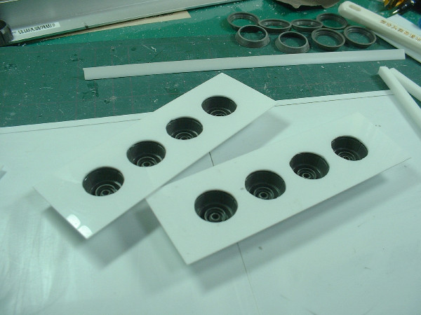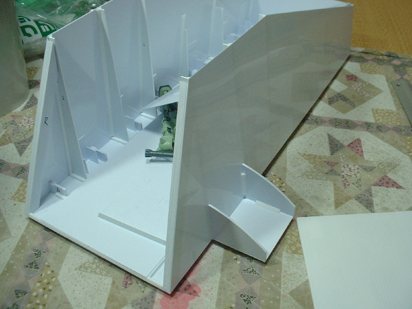 プラ板工作にとって、こういう曲線は難関だ。 パテを使用したいところだが、これだけ大きいサイズだといくらあっても足りない。 なので、スカート部分の骨組みを作って、表面にプラ板を貼り付ける方法を取る。 今日はそのプラ板の切り出し。